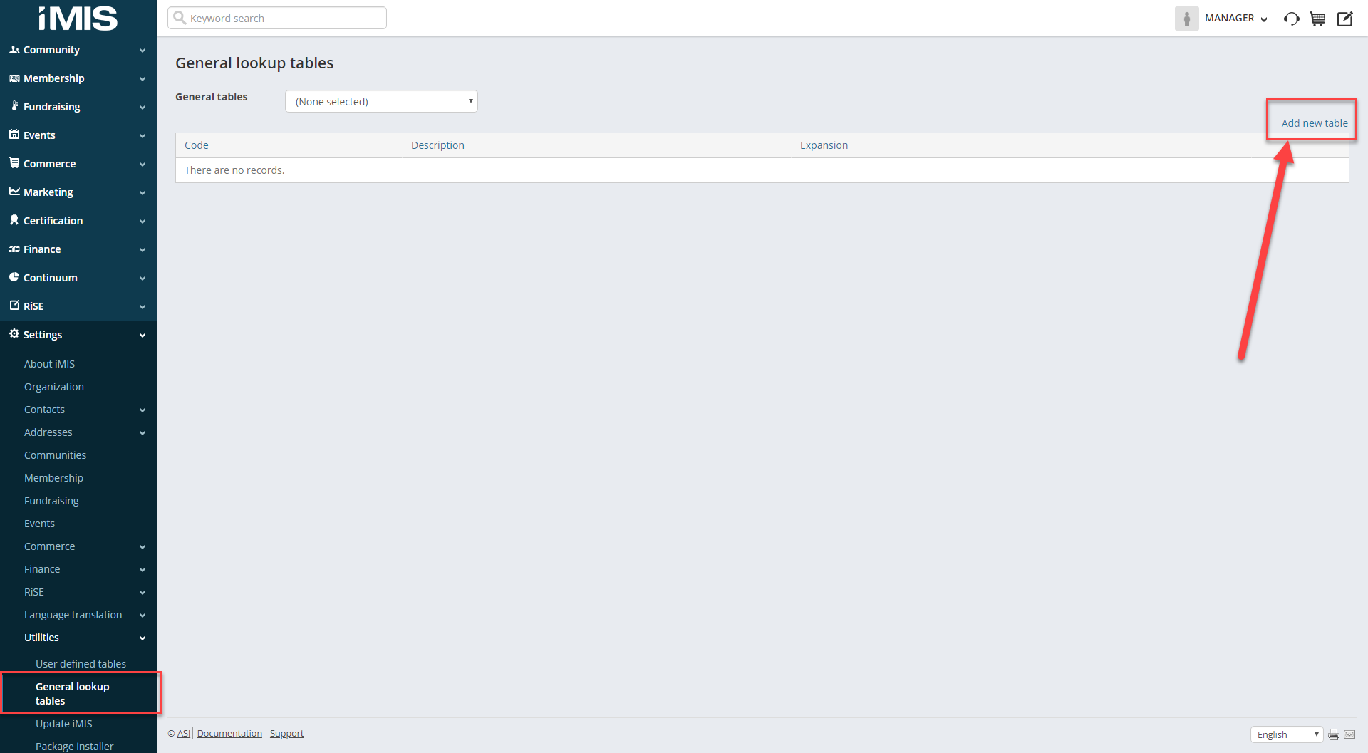 1. Log into iMIS with MANAGER (or another iMIS account that has the SysAdmin role assigned to it)