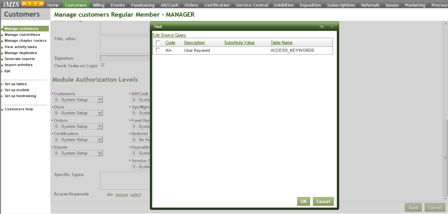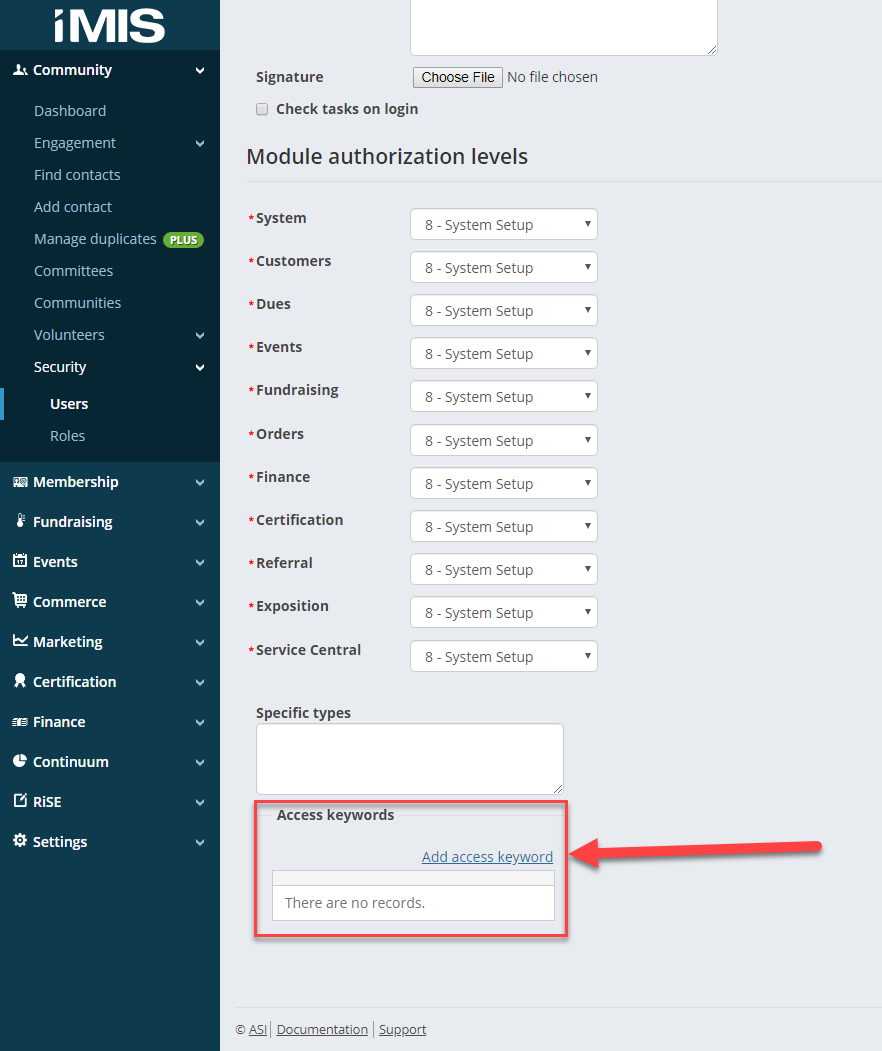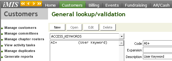 Adding Access Keywords to iMIS