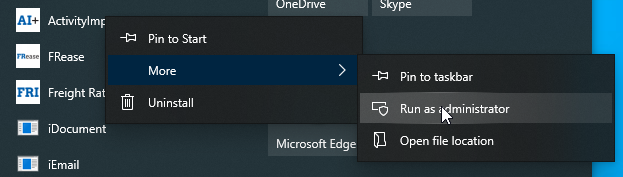 Upon opening a newly installed version of Activity Importer, you may be required to enter your SQL admin login/password so that the program may update SQL objects. In this instance, you should run the product as admin. Right click the product, click More, then click "Run as administrator".