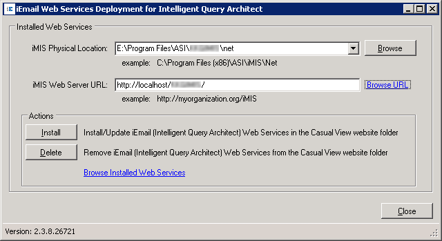 Install the iEmail Webservices Deployment IQA Setup on your iMIS Web Server by running the file iEmail Webservices Deployment IQA Setup.exe from the folder "Web Services IQA" found in the compressed zip file. Walk through the setup wizard until completed.