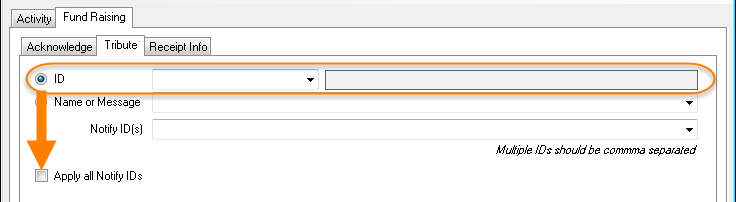 Similar to the configuration in iMIS the option Apply all Notify IDs is only available when the ID radio button option is selected: