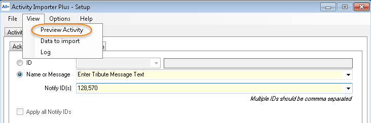 Notice the "Notify ID(s)" text field can be left blank. It can also be an iMIS ID or a list of iMIS IDs separated by commas. The value can be coming from one of the file columns or entered manually (which will put the same value for all activities imported).