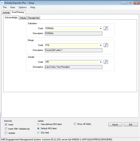 Activity Importer is a utility that allows the user to import activities into iMIS databases.