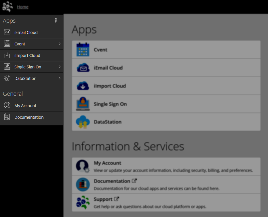 This section of the menu will list out the cloud apps that the client is licensed for. Further, if a client administrator does not give a specific user access to a specific cloud app, that app will not display for that user. This will be explained in the Manage User Access sections.
