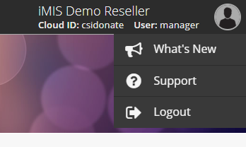 - The Person icon in upper right corner of the dashboard is used for What’s New, Support, and Logout.