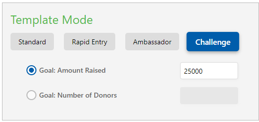 Challenge Mode is an optional Template mode in CSiDonate that allows a CSiDonate staff user to set a predefined goal for a particular template. The template will display a progress tracker at the top of the form indicating the overall progress towards the goal.