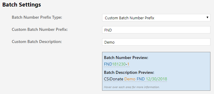 Custom Batch Number Prefix– Enter a custom 7-digit or less batch number prefix string. This will be used regardless of any cash account settings above.
