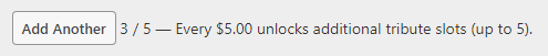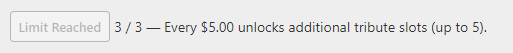 If the donor chooses an amount, enters some tribute information, and then later decreases their amount such that the tribute slot is no longer allowed at that dollar amount, then the bottom-most tribute(s) will be removed without warning in order to comply with the price per tribute setting.