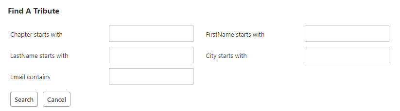 If an e-mail address is not entered, no e-mail is attempted for that person and no contact matching is performed by that user. It is up to the organization headquarters to decide what to do with these name-only tributes, which may also include a tribute message.