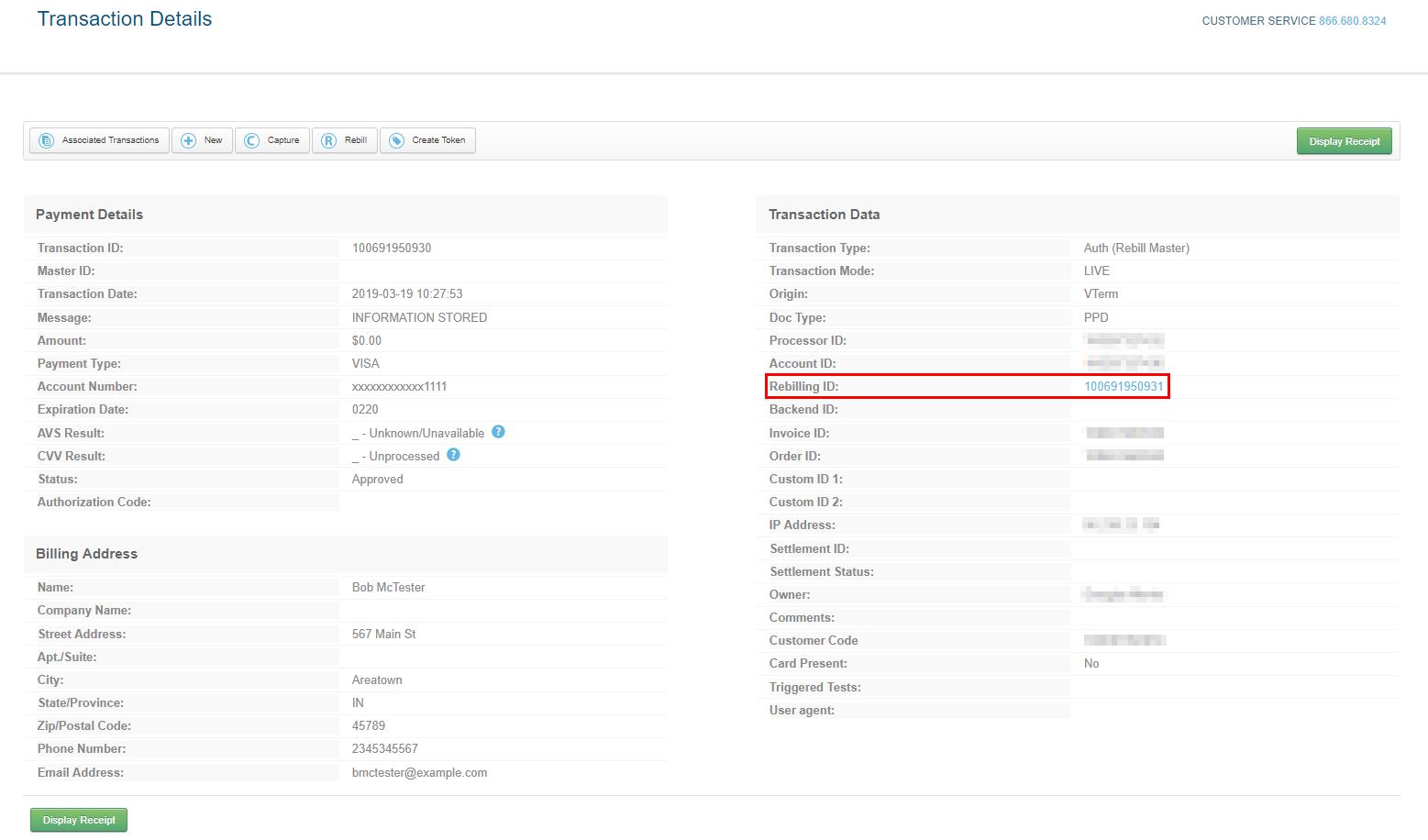 Click the Rebilling ID field to go to the Rebill Admin screen.