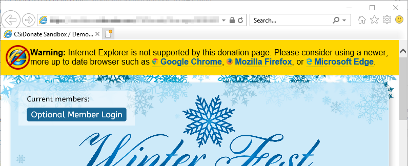 Here is a sample of the warning that is displayed to Internet Explorer users if the option is enabled:
