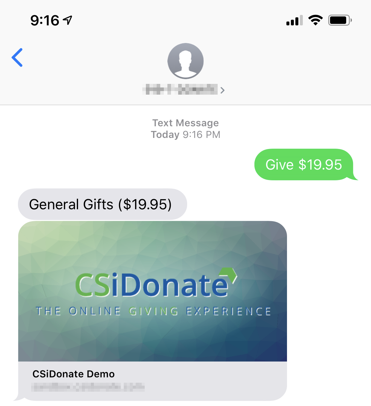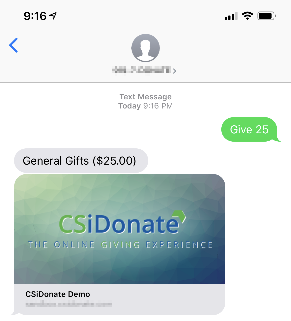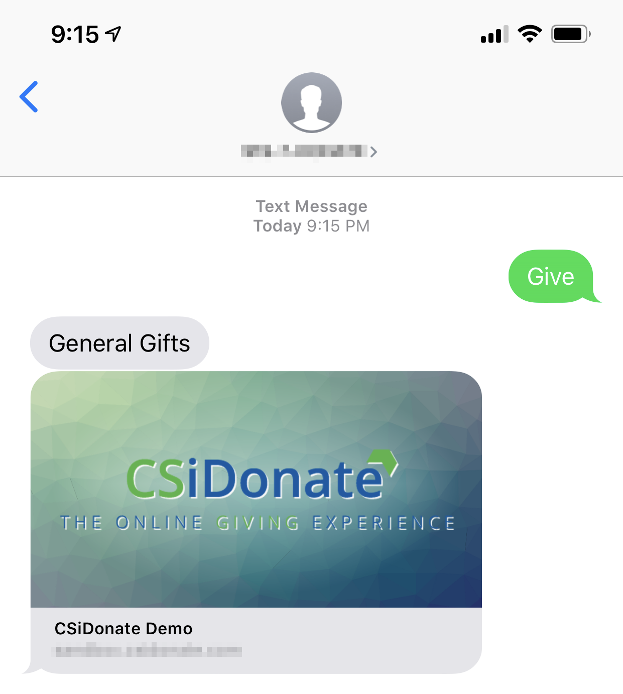 CSiDonate can match a text message's phone number to the iMIS database and, if a match is found, include a code that will pre-fill the user's information when they click on the Donate feature. This can save the donor a lot of time on their mobile device.