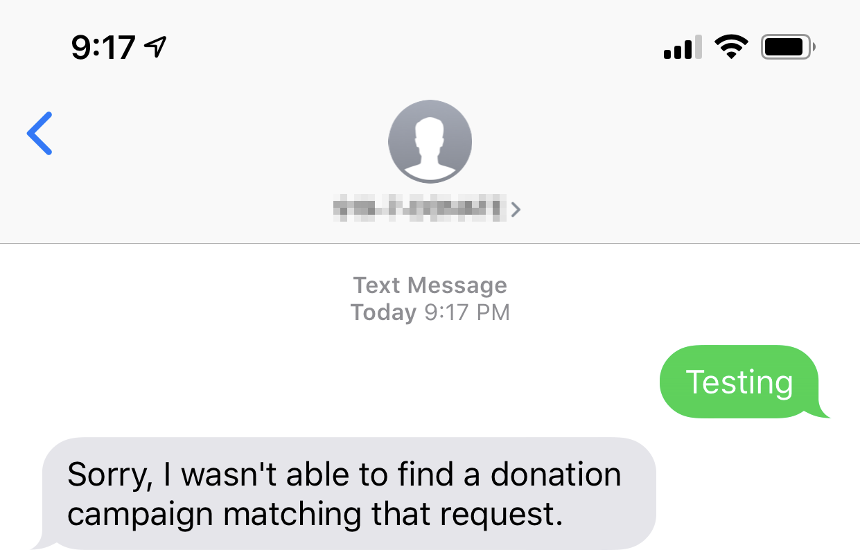Hello, you have reached the donation text number for Example Organization. To donate to our organization,