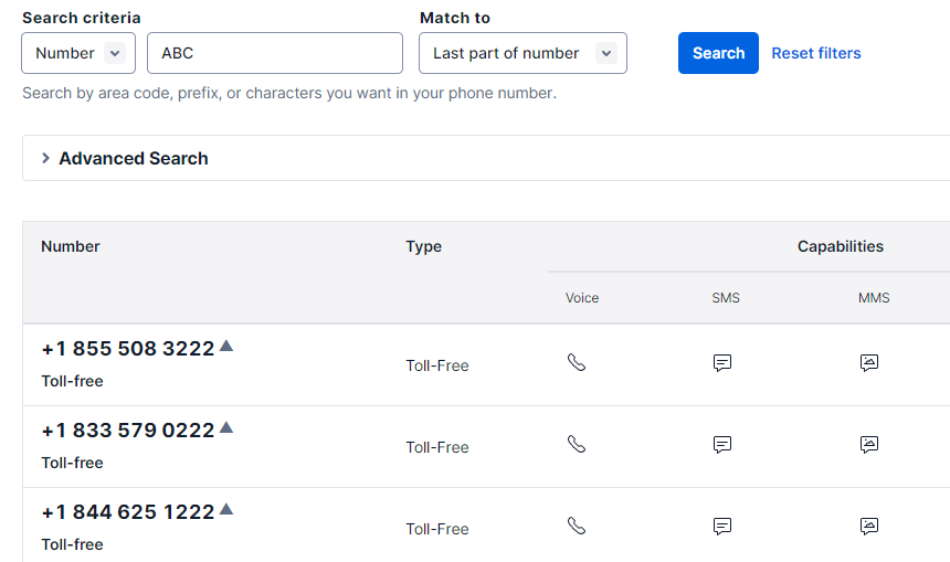 Lease a Toll-Free number that has SMS capabilities. (We recommend searching for a phone number that has numbers or letters that have meaning to your organization!)