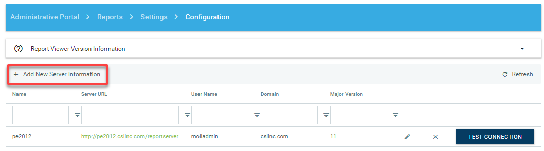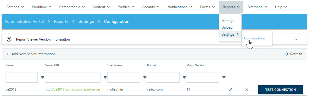 Select the Report Server in the dropdown box you created in the section on Server mode Configuration.