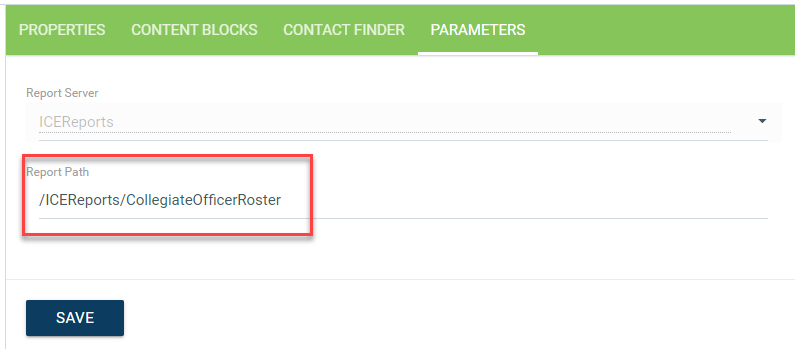 Copy the part of the URL after "report" and paste that portion into the parameter tab of the ICE sitemap: /ICEReports/CollegiateOfficerRoster