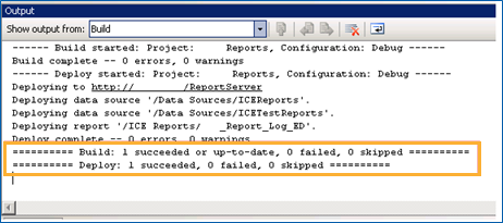 This is the result you should see in your Output window. If you do not see this, please troubleshoot your report until it is deployed successfully.