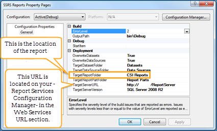 Note: The Report Server URL is different than the Report Manager URL (e.g. http://servername/reports)