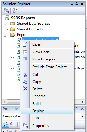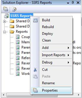 Right click on the main solution name – in this case the project is called 'SSRS Reports'