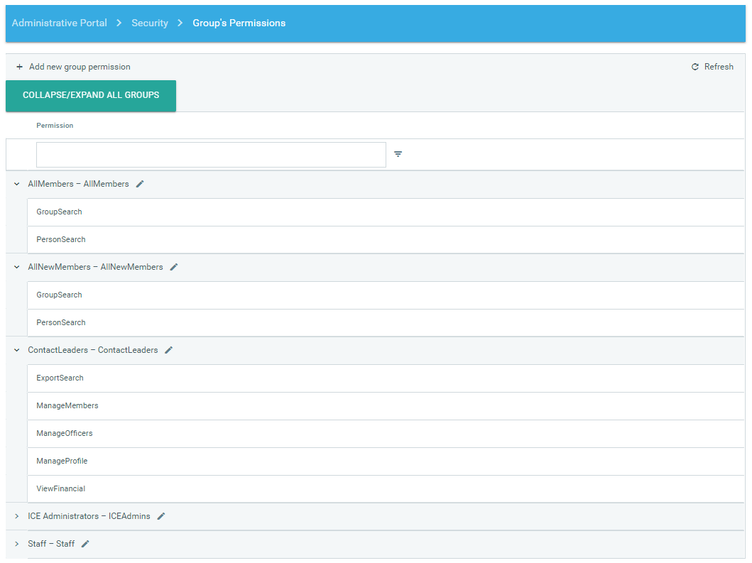 BEST PRACTICE: Modify the existing security groups and permissions when possible to reduce the overall number of groups and permissions that must be managed. During initial installations, ensure that the Admin security group is set up. Do NOT delete the ICEAdmin security group.