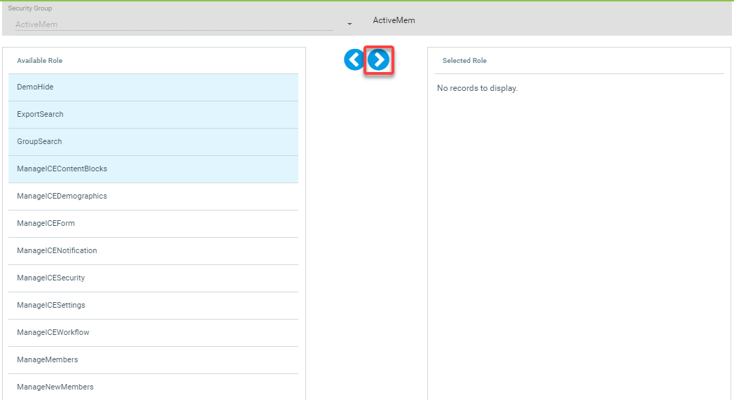 Select the group you would like to add a permission for or edit permissions. Use the Ctrl or Shift key to select multiple permissions at a time. Select the right arrow to add the permissions for the group. Select the left arrow to remove a permission from a group.