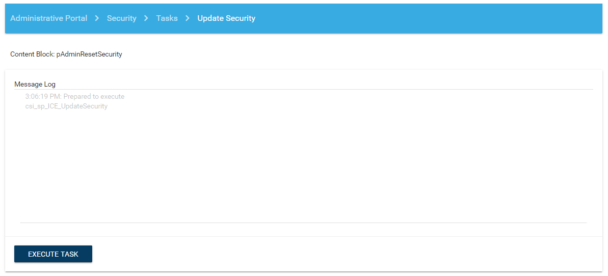 When changes are made to security groups, permissions or to the sitemap permissions, the following tasks should be executed: Update Security and Reset Person Security. The following scripts are involved: