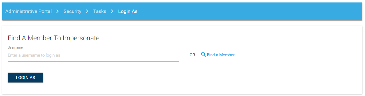 To log into ICE as another user to confirm access, go to Security > Tasks > Login As. Enter username or iMIS ID. You will remain logged in as this user for as long as you maintain the session in your web browser.