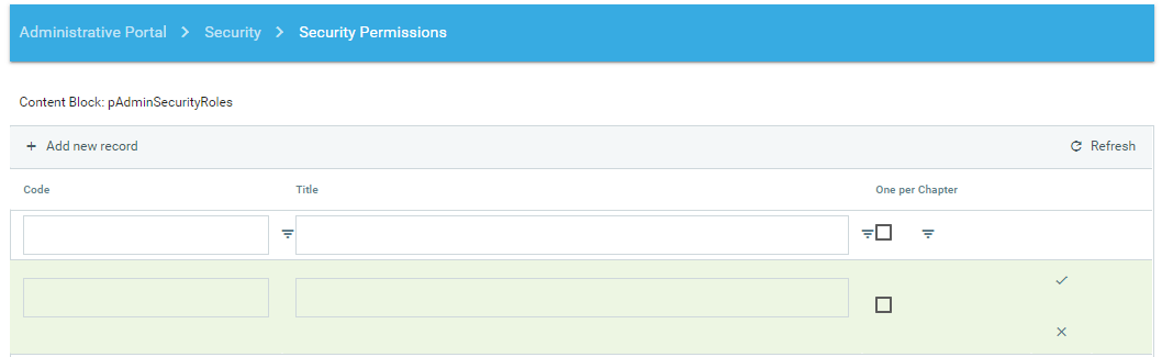 Check the One per Chapter checkbox control if the users from the group associated with this Security Permission will have access to only specific chapters