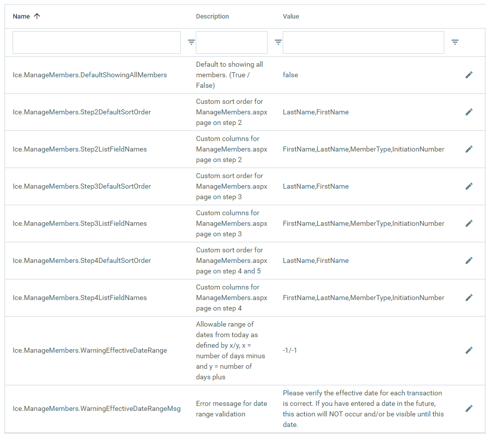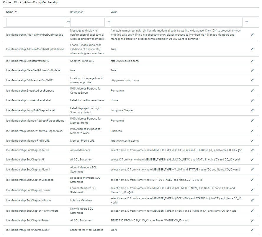 The membership configuration area enables queries and settings, used throughout ICE, to define members and classes of membership, i.e. who is a member, who is not a member, etc. Most of these settings are defined during the original implementation and typically do not need to be changed.