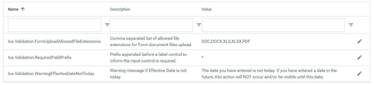 The validation configuration section includes settings related to forms processing validation and document upload.