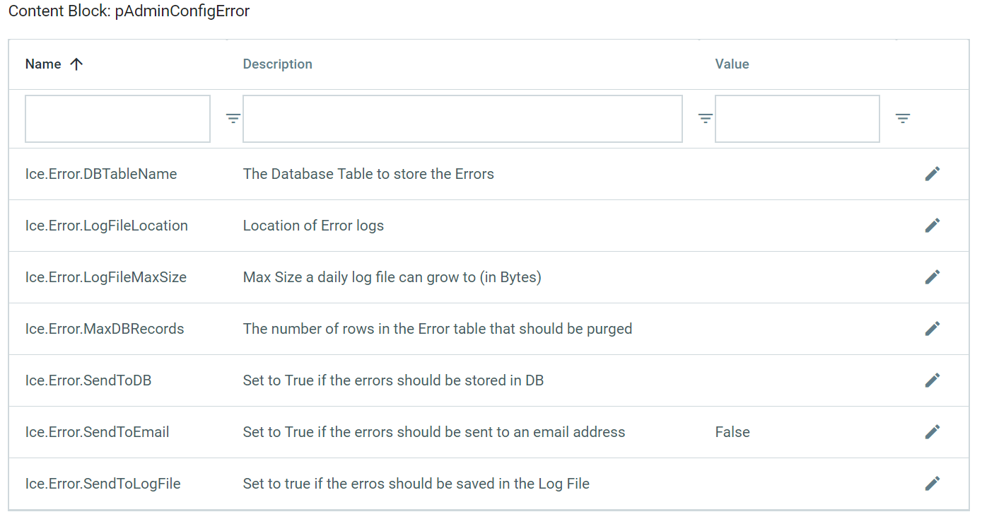 The error configuration is used to define system settings related to tracking user settings. It is generally for development reference purposes only.
