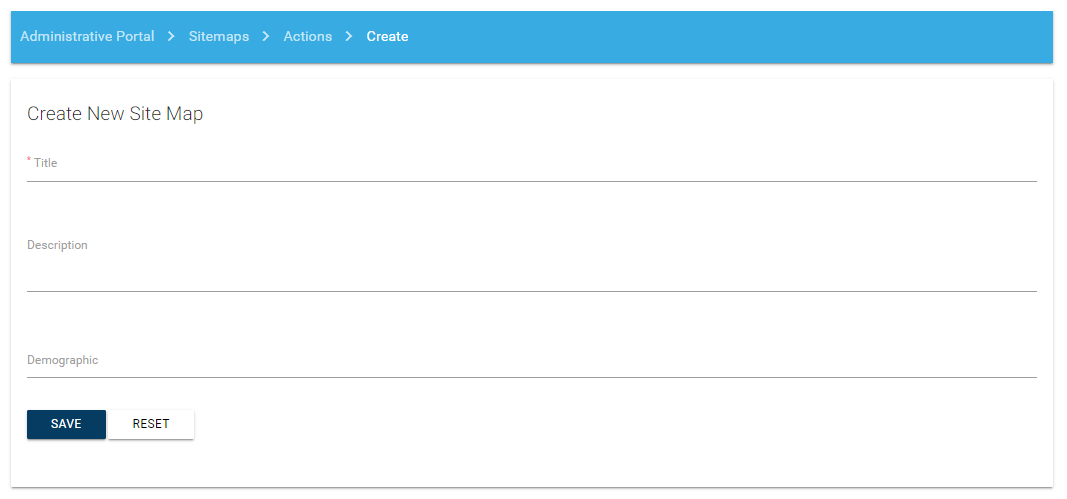 The Title field is required when creating a new sitemap.