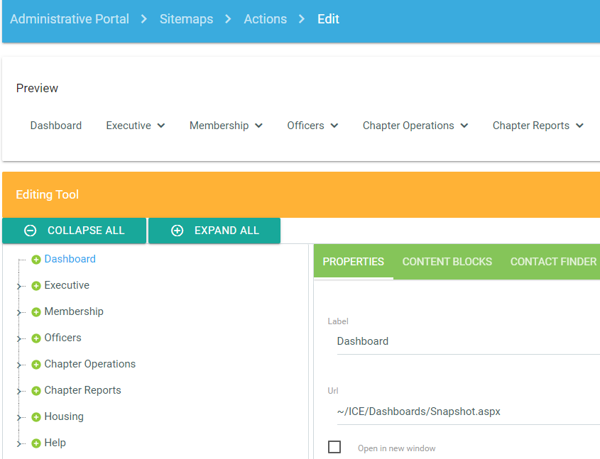 A new sitemap control option (~/ICE/Actions/ExternalContentPage.aspx) provides the ability to embed an external content page within the ICE portal website.