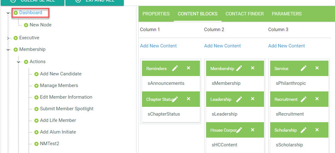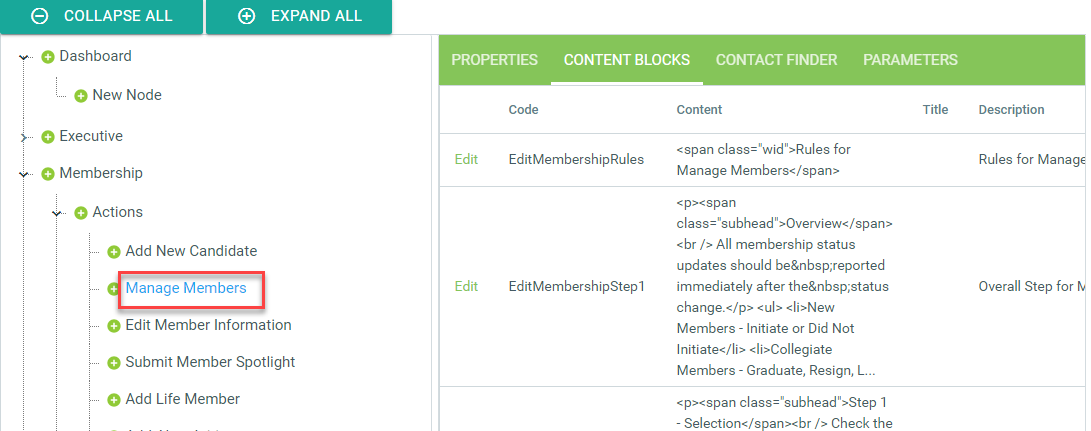The Contact Finder tab will display when the node URL selected is the Manage Members or Manage Committees web page.