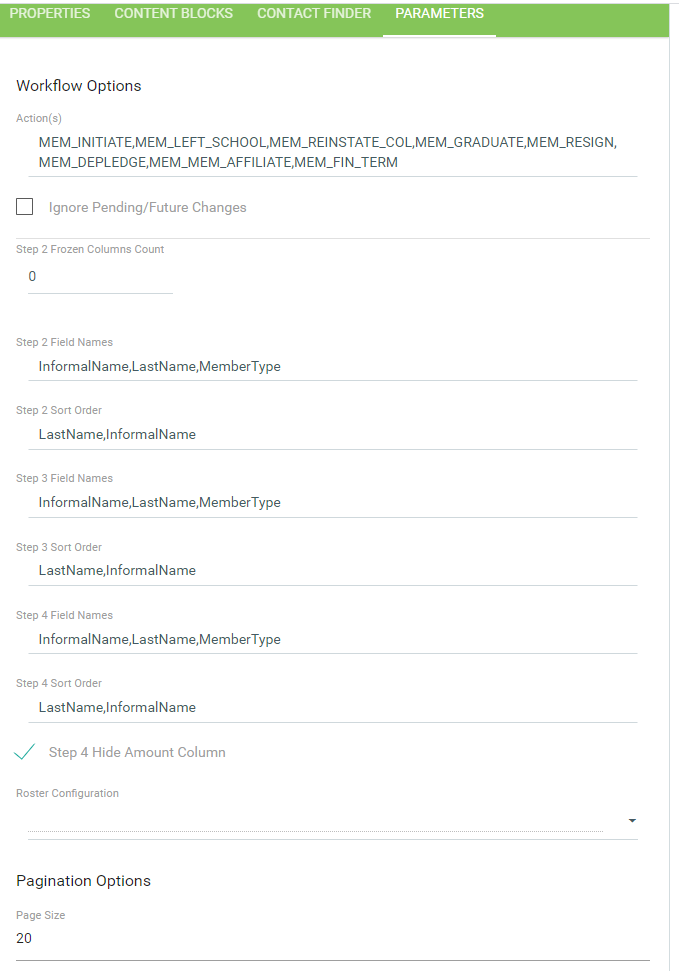 (new feature in 5.1!) Pagination Options can be used to specify the number of members shown on a page. This can improved the speed of the page for chapters that have a lot of members on their roster.