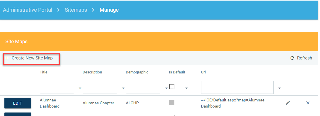 To edit the details of the sitemap, select the Edit button on the left side.