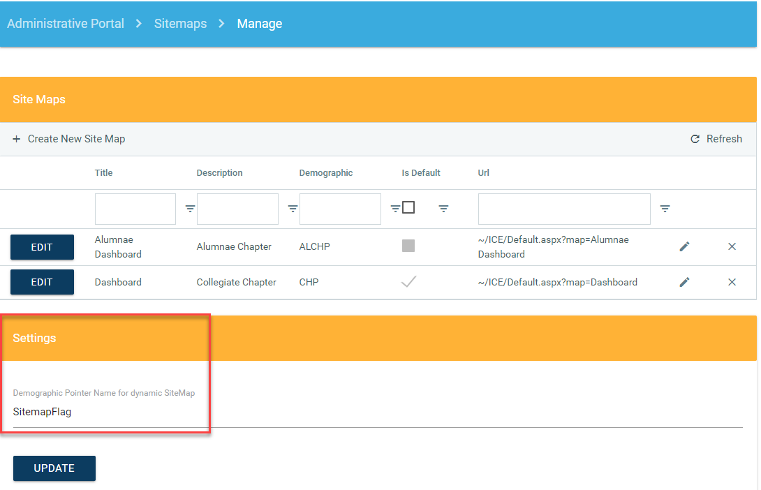 Within ICE Admin, select Sitemaps > Settings > Configuration