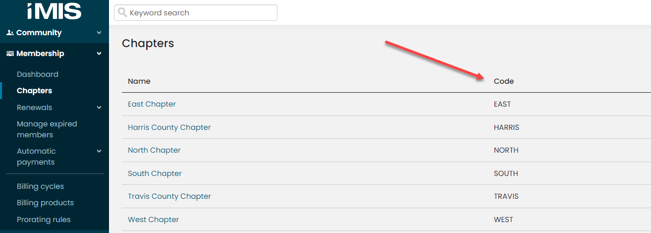 For example, if you want to update the East Chapter in the above image, the Billing Product (Code) would be CHAPT/EAST.