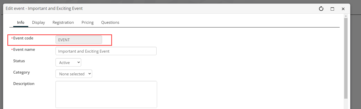 Event Code - This code determines the overall event that the ID will register for (general). Found under the "Info" tab.