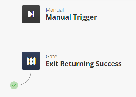 When a gate is used, visual indicators show possible flow routes for the workflow. For example, for a gate that always quits the workflow returning success: