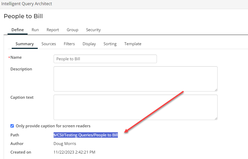 To Bill Contacts from Query Path, copying the query path is required. The query path will be pasted into this field. Do not use this query as the source for iUpdate. Remember, only one record should be passed, and it can contain the query path as a source field.