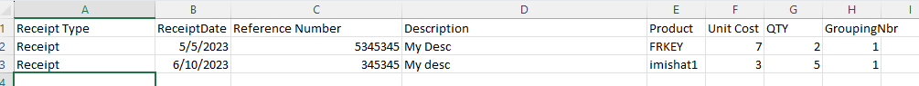 Grouping Number - Ability to group your products in the same receipt/adjustment. See example mapping.