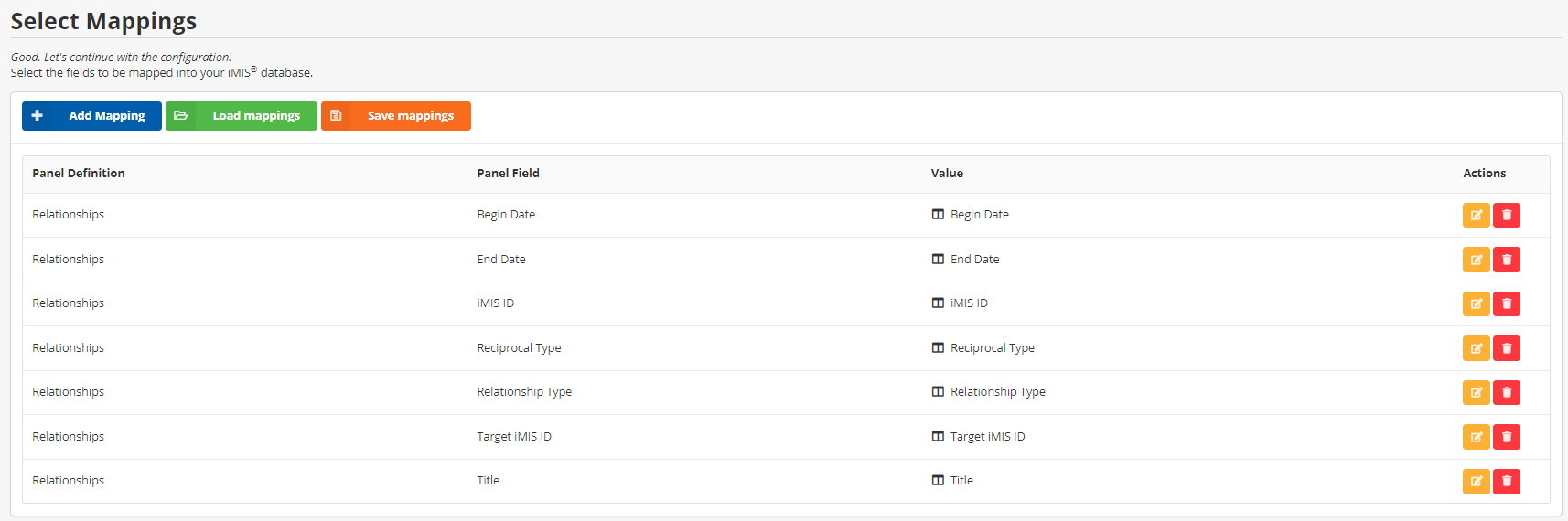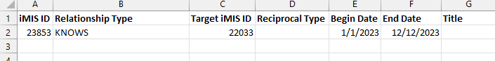 Target iMIS ID - The ID that the primary ID has the relationship with. The relationship will appear on the target iMIS ID’s if the reciprocal type field is mapped.