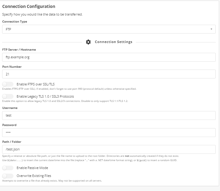 The FTP Transmission action relates to the Connection Configuration in the iTransfer job step