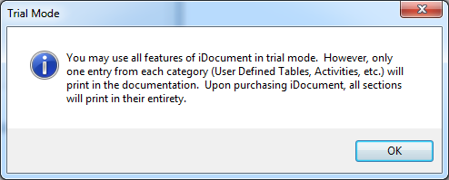 Note: If this is your first time using iDocument, you may be prompted for a license key. If so, please enter the one CSI provided. If you need a new license key, please contact support@csiinc.com. If you are simply running iDocument in Trial Mode, select "Start in Trial Mode" and click OK.