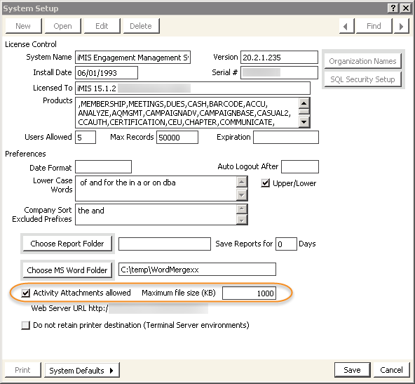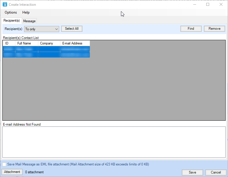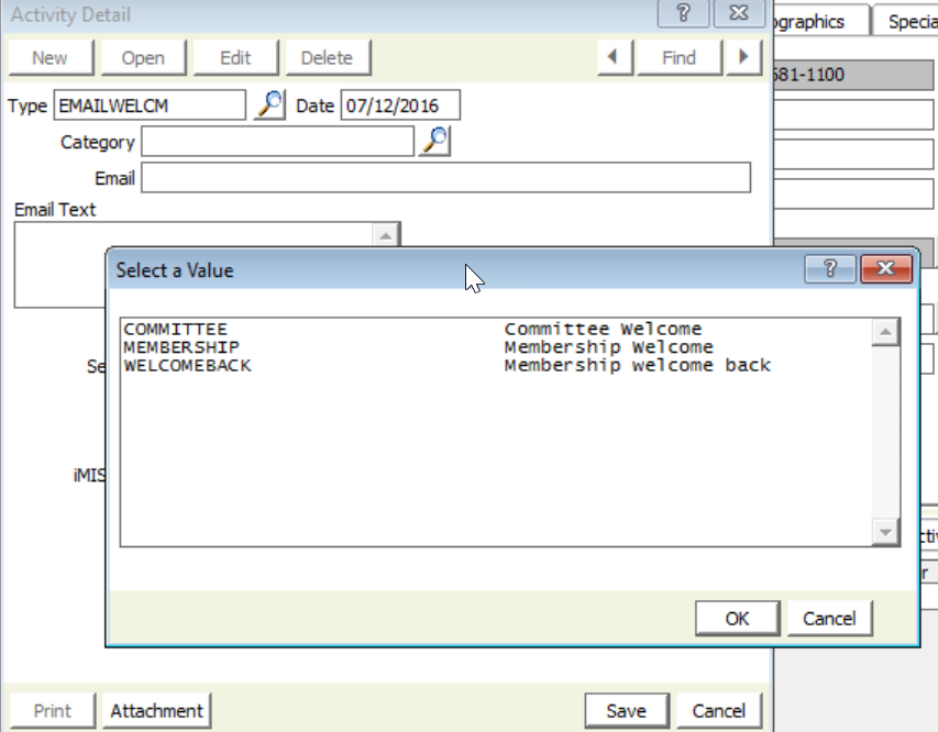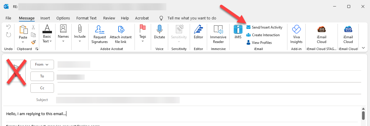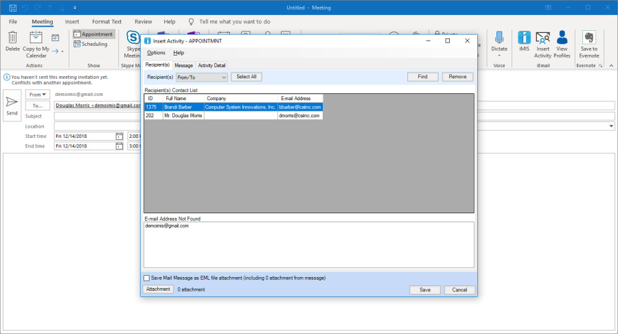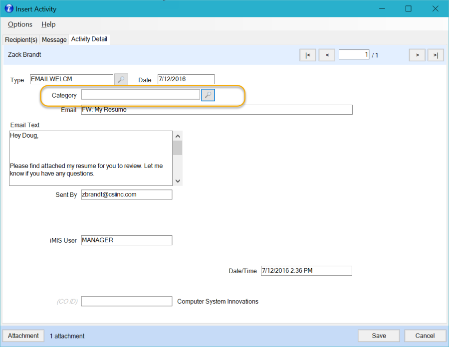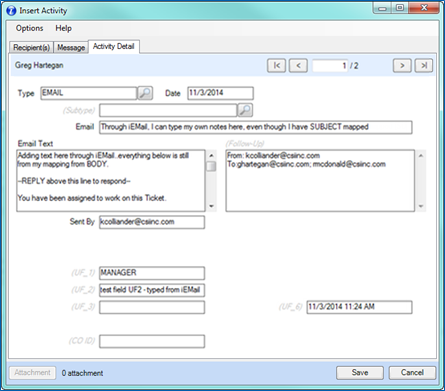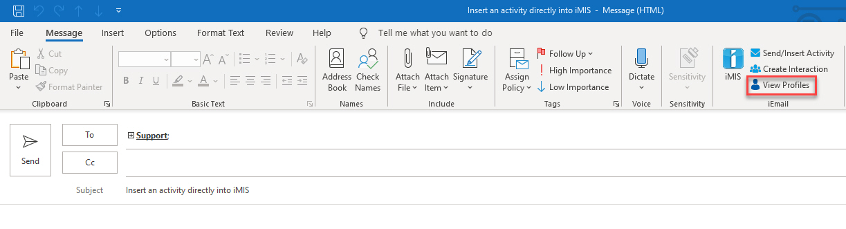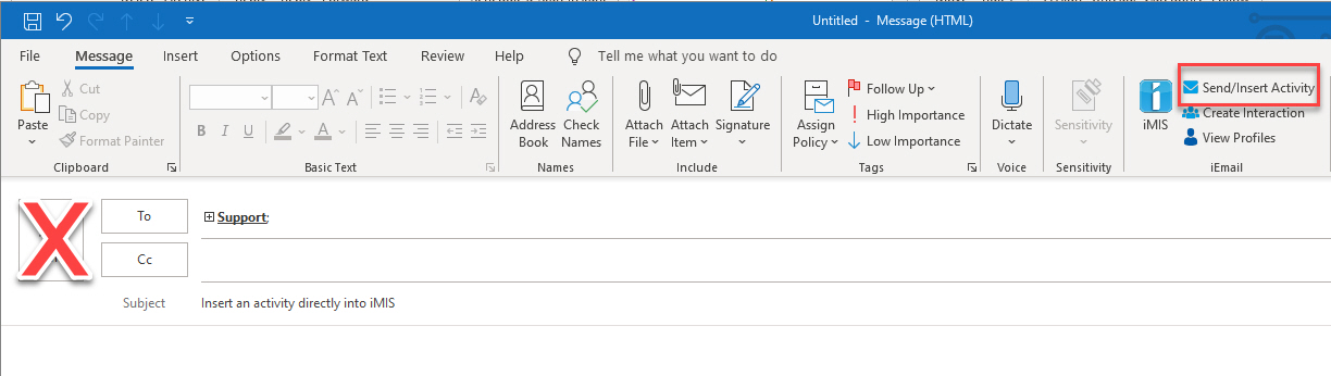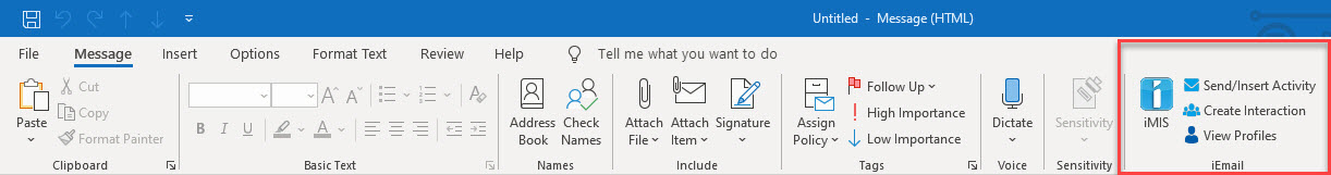 The option to insert emails directly into iMIS as activities along with text and attachments.