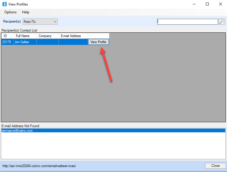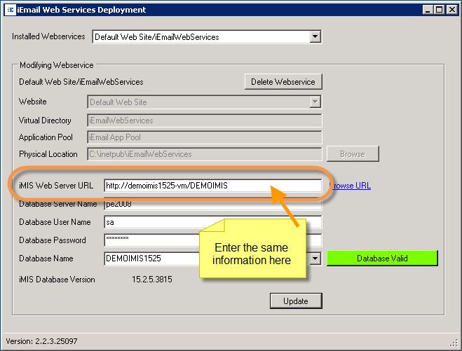 Confirm you have configured the iEmail Web Services Deployment program with the iMIS Web Server URL