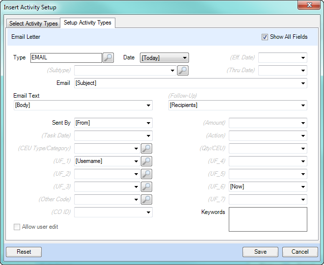 2.5.0 | 10/10/2014 | Ability to edit fields when inserting activities providing activity type is setup to allow edit (CW 42533). |
