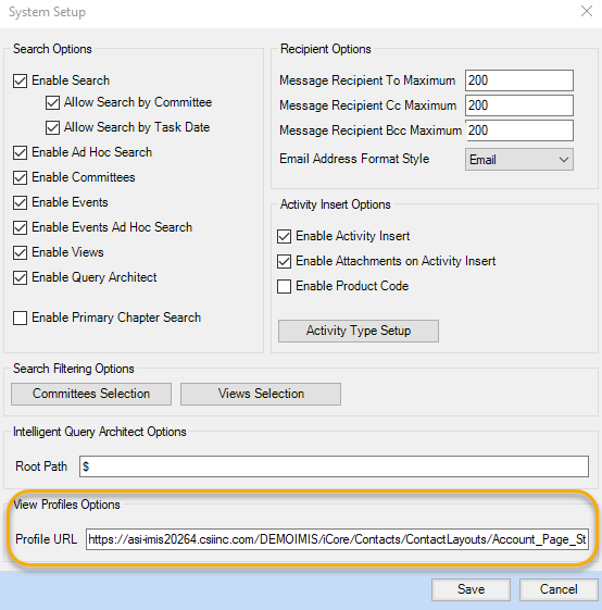 iMIS Web Server URL: The URL that you use to launch iMIS minus the /CS at the end (see iMIS Login Screen). Use the same Staff site URL you entered above during the Configuring iEmail (IQA) Web Services step, DO NOT FORGET TO START WITH HTTPS:// as HTTP:// will not work.