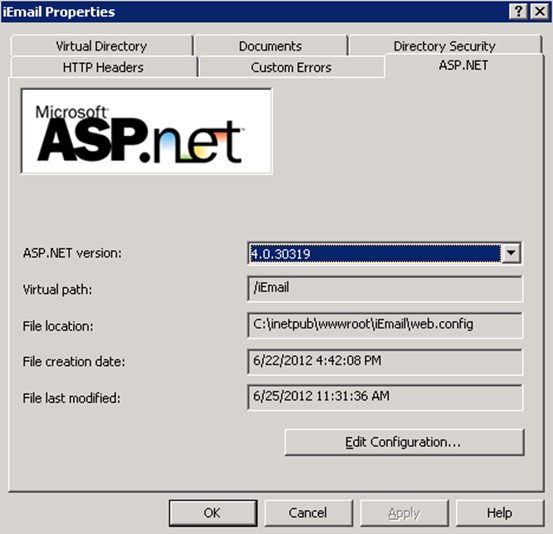 Virtual Directory:This will be the name of your iEmail Web Service. We recommend leaving the default of 'iEmailWebServices'
